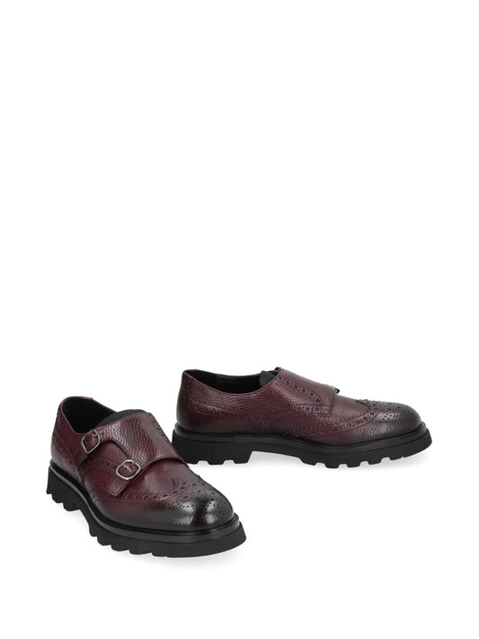Santoni double-buckle leather monk shoes