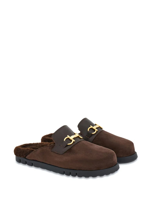 Ferragamo Gancini wool and leather mules