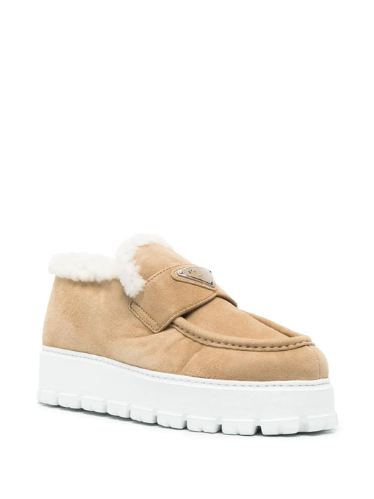 Prada triangle-logo shearling loafers